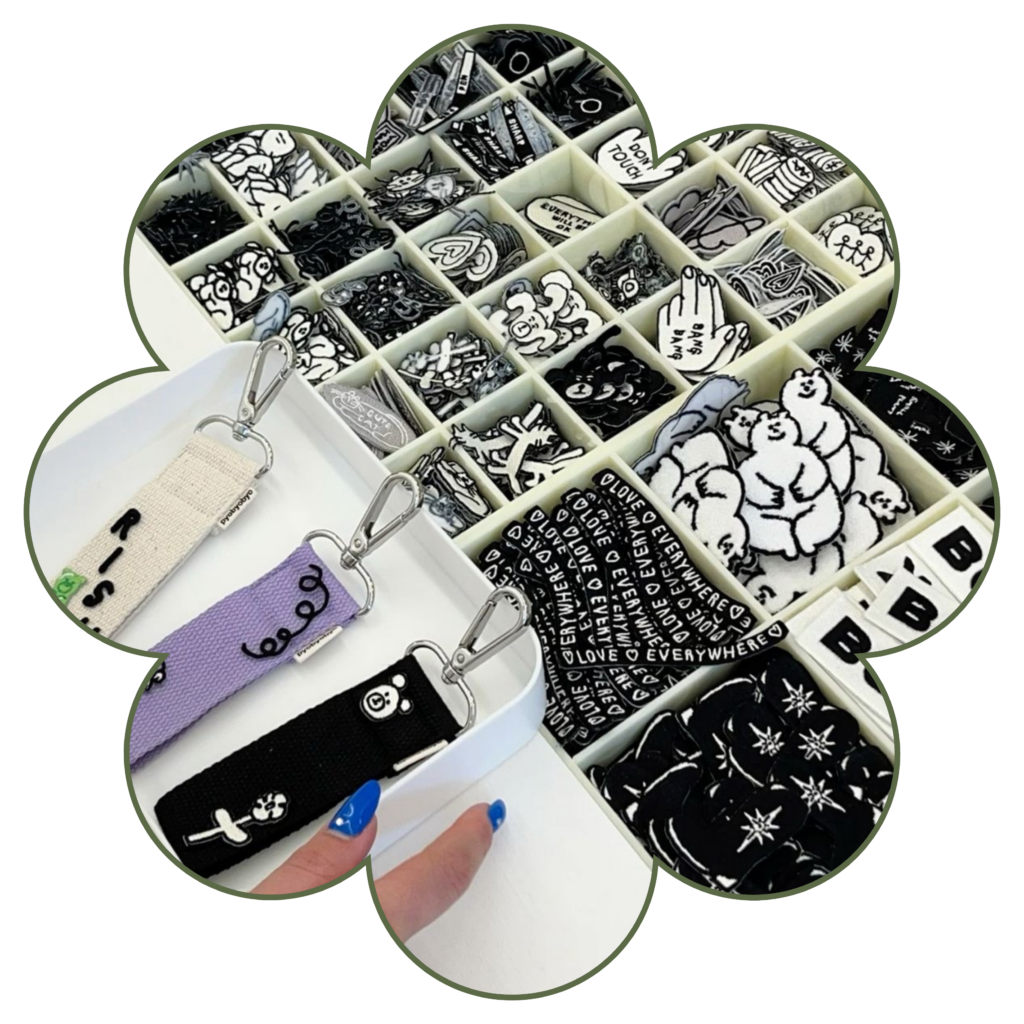 Interactive DIY station to select and apply embroidery patches to accessories, creating personalized keepsakes.
